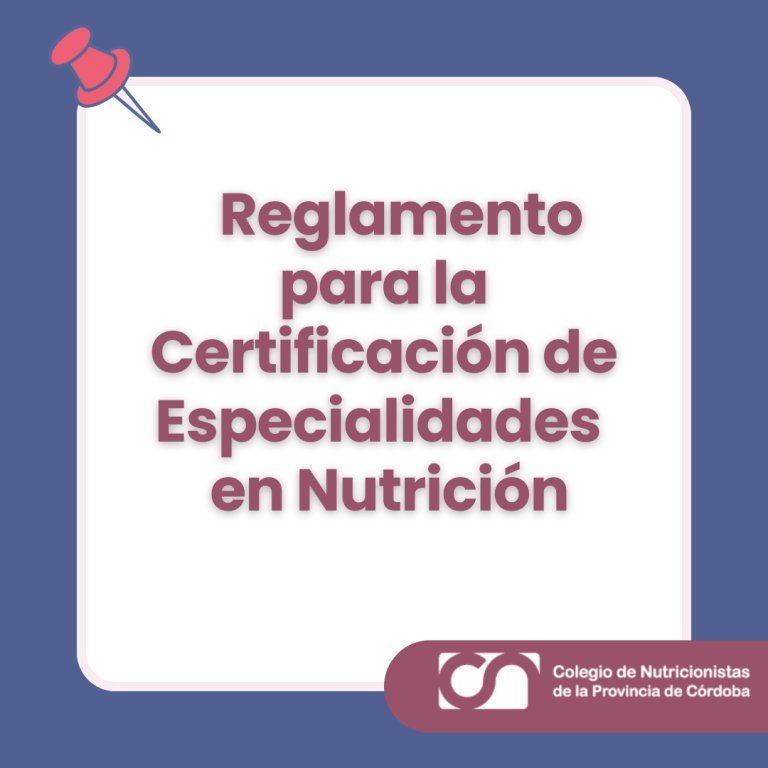 El Colegio de Nutricionistas de Córdoba comparte el Reglamento para la Certificación y otorgamiento de Matrícula de Especialistas en